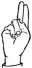 На ћирилици написано ЛАБУДА ЖИВКОВИЋ састоји се из 14 слова [?]. Исписано ћириличном једноручном азбуком за глувонеме: